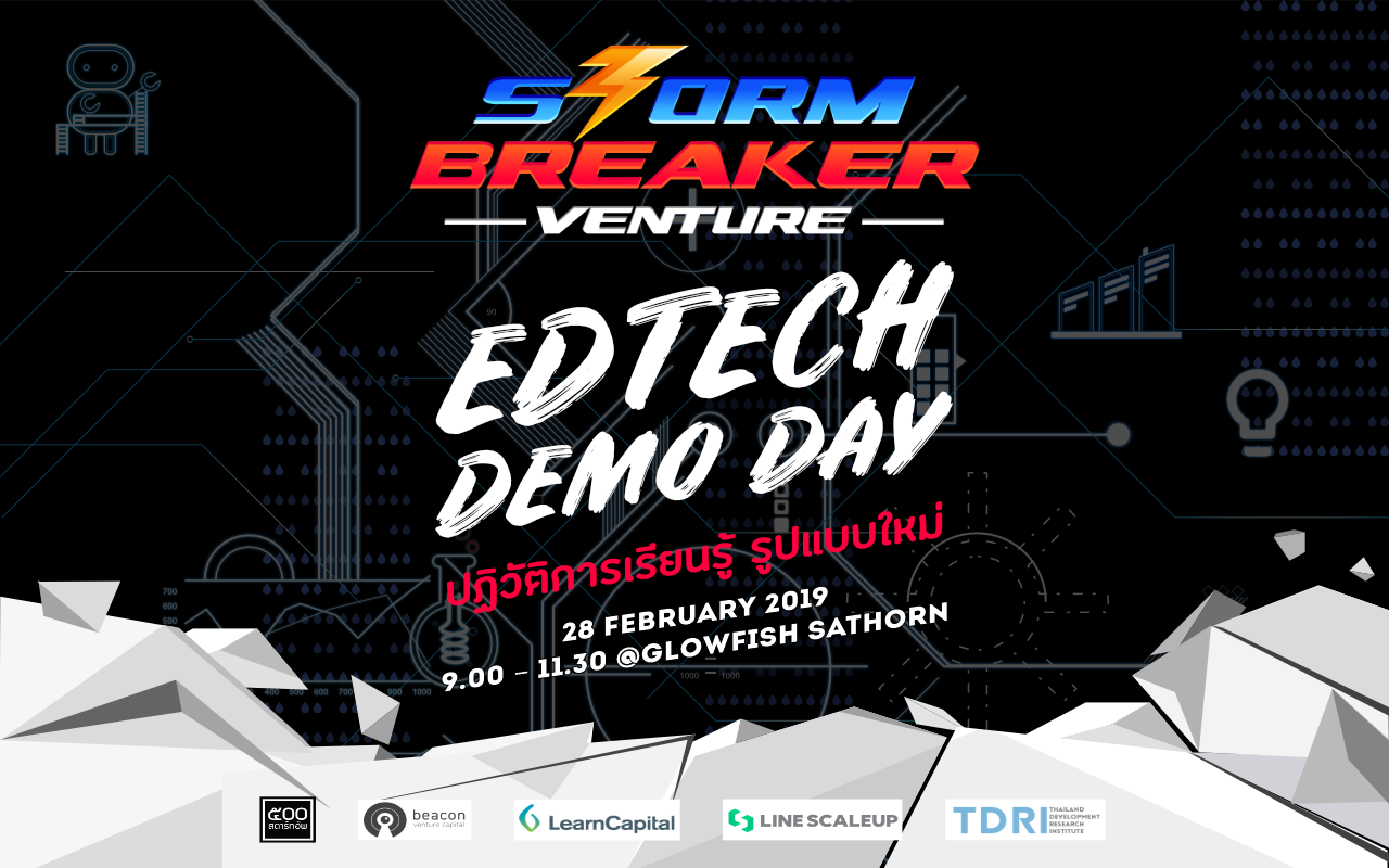 มาร่วมปฏิวัติการศึกษาไทยให้ก้าวทันโลกแห่งเทคโนโลยี ในงาน StormBreaker Venture Demo Day ซึ่ง เป็น Batch แรกของโครงการบ่มเพาะสตาร์ทอัพด้านการศึกษา (Edtech Accelerator) แห่งแรกใน Southeast Asia