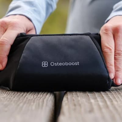 Osteoboost is the only FDA De Novo-cleared wearable device for low bone density - a vibration belt clinically shown to slow down the decline in vertebral bone strength and bone mineral density. Prescribed to post-menopausal women with osteopenia, it works passively during daily activity and pairs with an app for usage tracking and exercise programs.